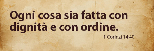 Ma ogni cosa sia fatta con dignità e con ordine (1 Corinzi 14:40).